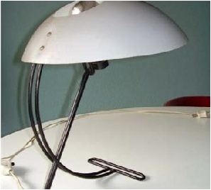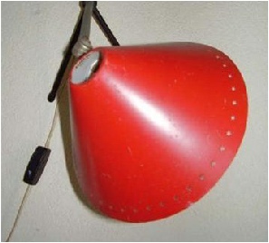Het minimalisme, uit nood geboren maar alras tot norm verheven, van de jaren 50 komt ook mooi tot uiting in de lampen van de lampen fabriek Hala, uit Zeist. De ontwerper in de jaren 50 was H.Th.J.A. Busquet, die een paar markante en amusante lampen heeft ontworpen. Die Busquet moet het leven niet al te serieus genomen hebben. Het bekendste is wellicht het Pinokkio lampje. Waarom dit lampje zo heet weet ik niet precies maar ik vermoed dat het te maken heeft met de neus van Pinokkio, die kon groeien bij leugens, zo ook dit lampje, door het staandertje te verplaatsen kan dit lampje meer of minder rechtop staan. Maar hij kon ook aan de muur. Het is een speels humoristisch lampje, een lampje met een knipoog.Een Pinokkio lampje is 50 euro waard mits in goede staat. Ze zijn er in de kleuren zwart rood geel en wit.Een andere serie lampen van Hala en Busquet is de zonne serie.