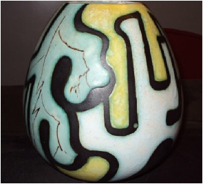 Zeer kenmerkend voor die tijd, het amorfe glazuur,