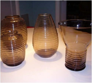 voet is aan de onderkant wathoekig, wat hoger rond. Kleuren zijn rookkleurig, groen,