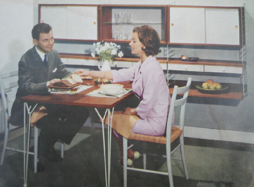 Typerend voor de jaren 50 zijn de wandsystemen. Ik heb het al over pilastro gehad en tomado, verder had je in Emmen drentea, drentea room steel heette hun syteem in goed emmens engels, de planken van Drentea lijken op Pilastro maar zijn precies 70 cm, in Denemarken had je Paul Cordovius en in Zweden had en tegenwoordig heb je String.